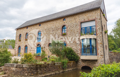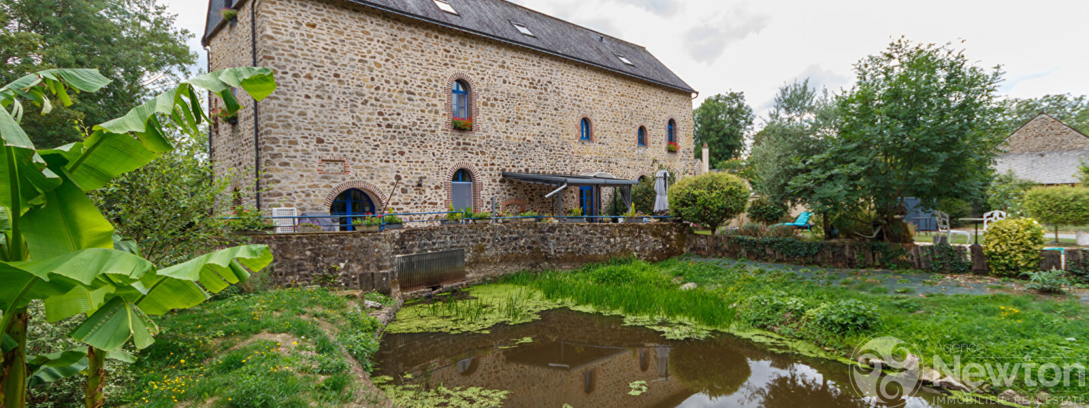 MAYENNE: Maison de moulin impeccablement rénovée avec jolis jardins, bief et aménagements aquatiques