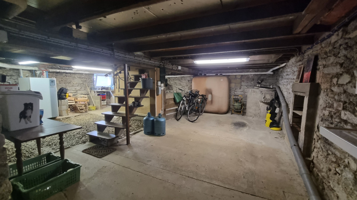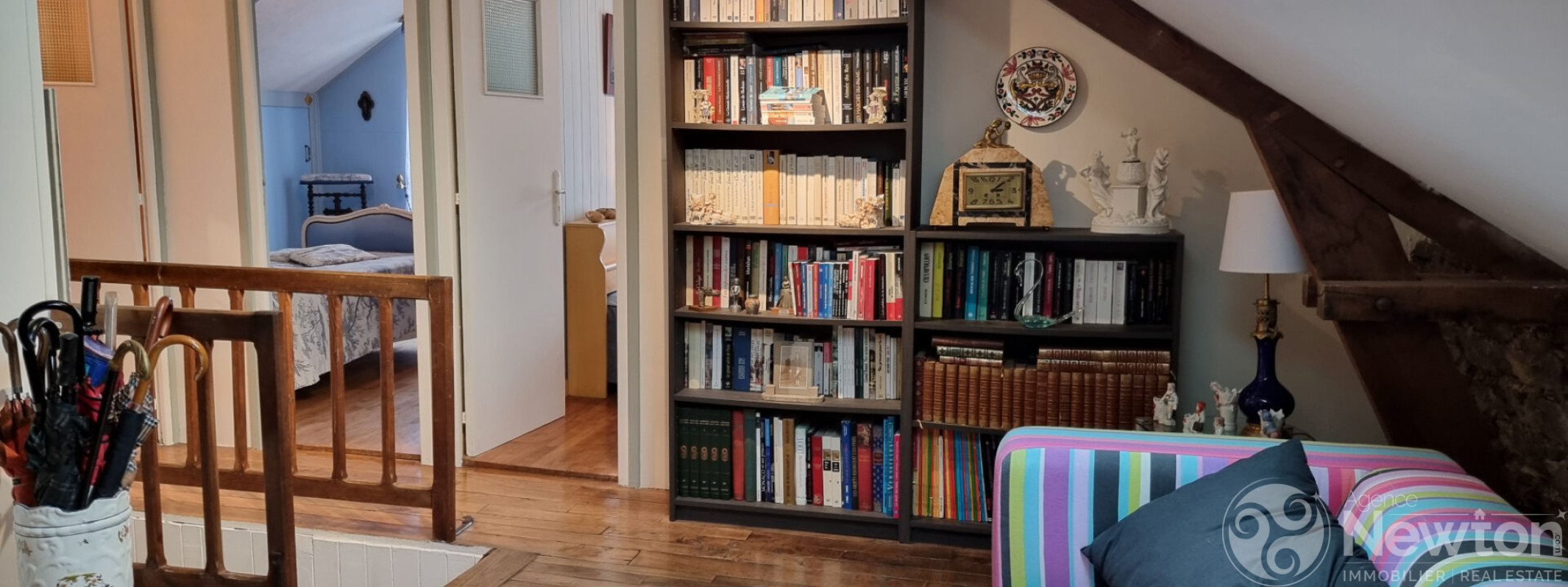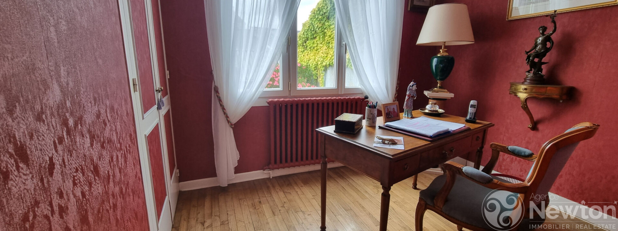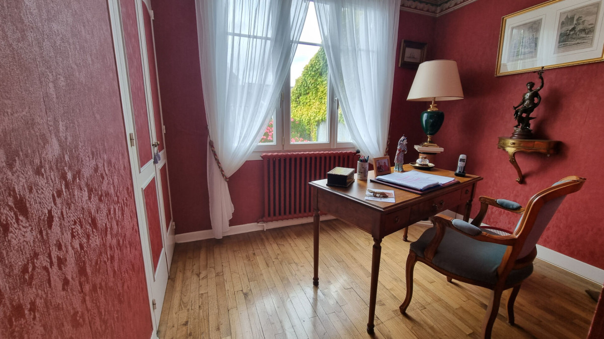 A l'étage, un vaste palier dessert trois autres chambres ainsi qu'une pièce avec lavabo. Le sous-sol de la maison offre encore davantage de possibilités, avec, d'un côté, un garage abritant la chaudière du chauffage central au fioul, et de l'autre, un bureau/cuisine d'été pratique avec espace buanderie donnant directement accès au jardin arrière entièrement clos, idéal pour les enfants et les animaux.