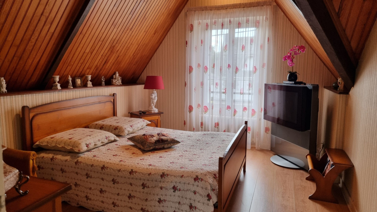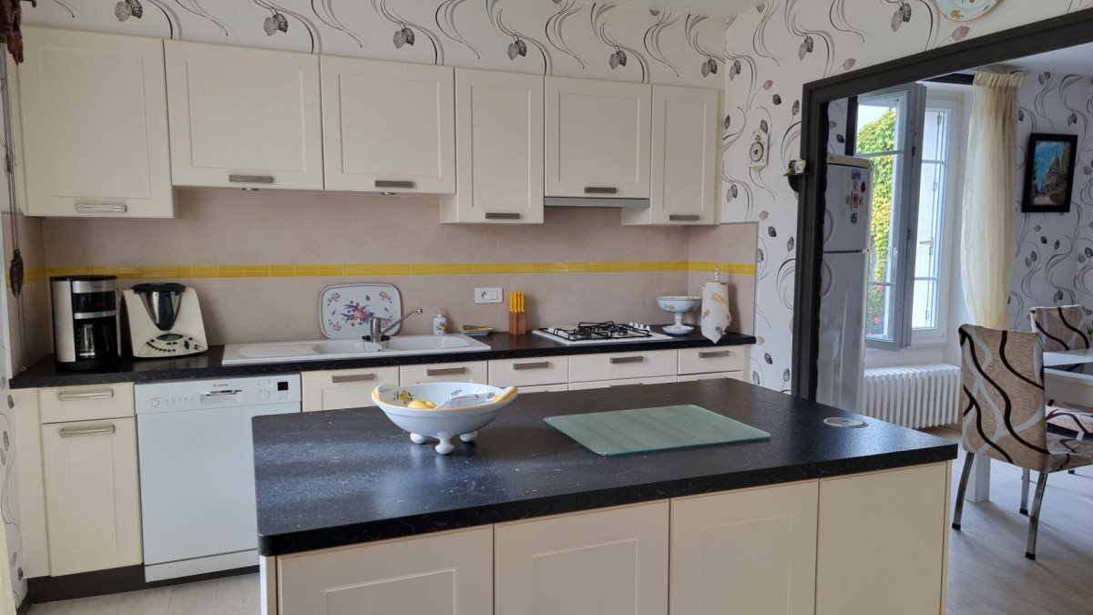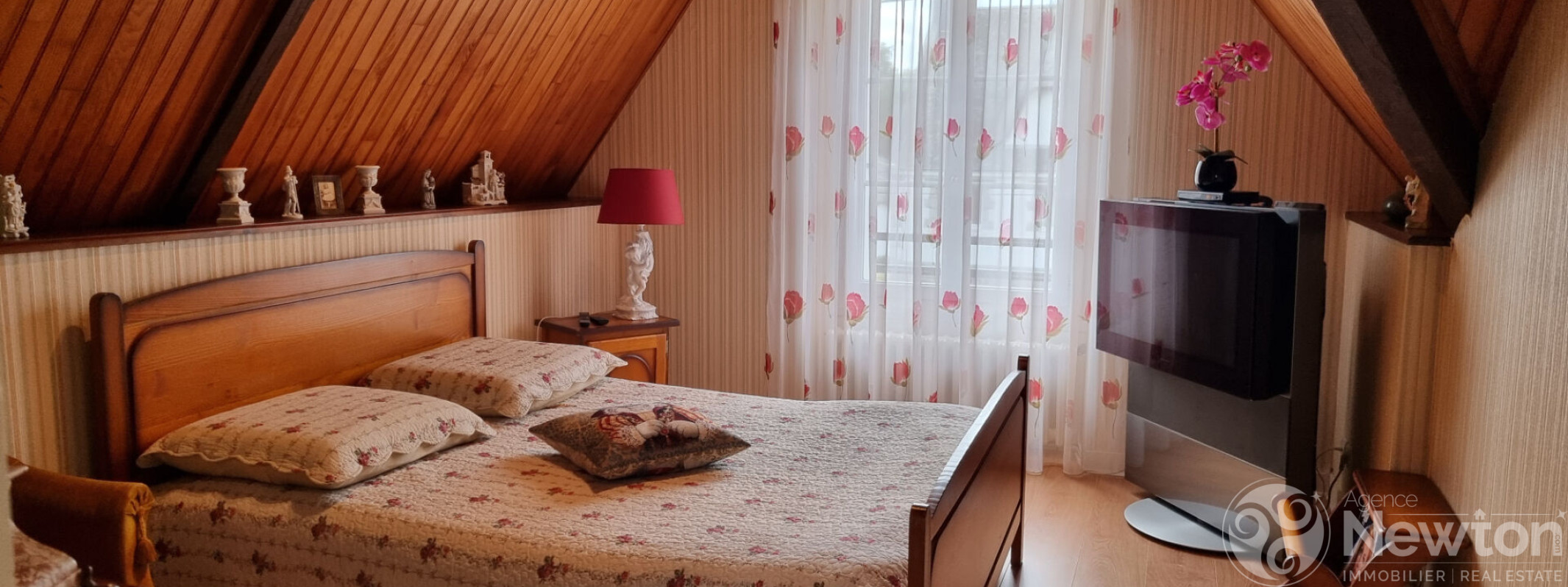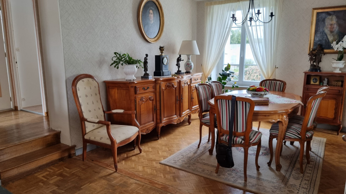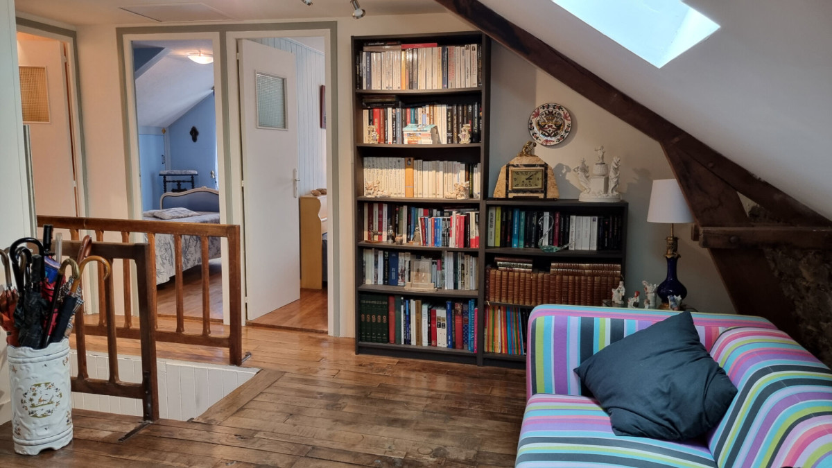 A l'étage, un vaste palier dessert trois autres chambres ainsi qu'une pièce avec lavabo. Le sous-sol de la maison offre encore davantage de possibilités, avec, d'un côté, un garage abritant la chaudière du chauffage central au fioul, et de l'autre, un bureau/cuisine d'été pratique avec espace buanderie donnant directement accès au jardin arrière entièrement clos, idéal pour les enfants et les animaux.
