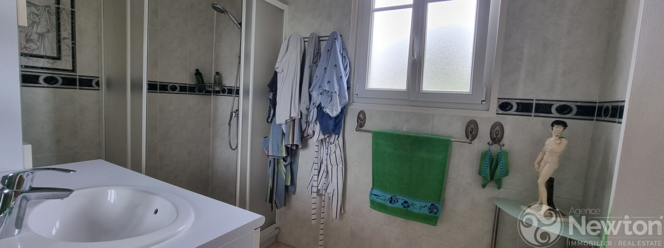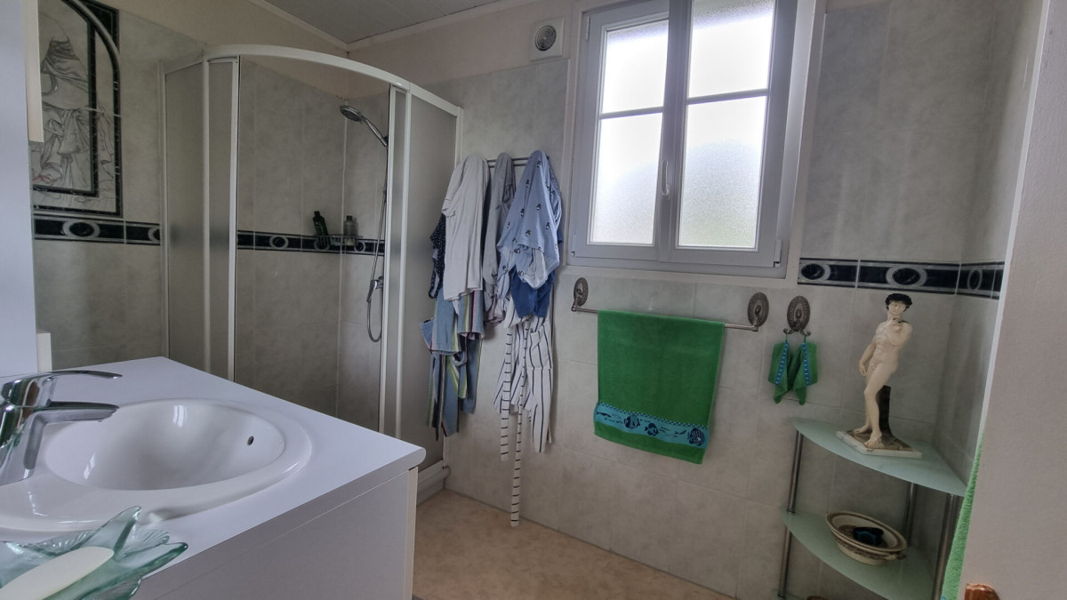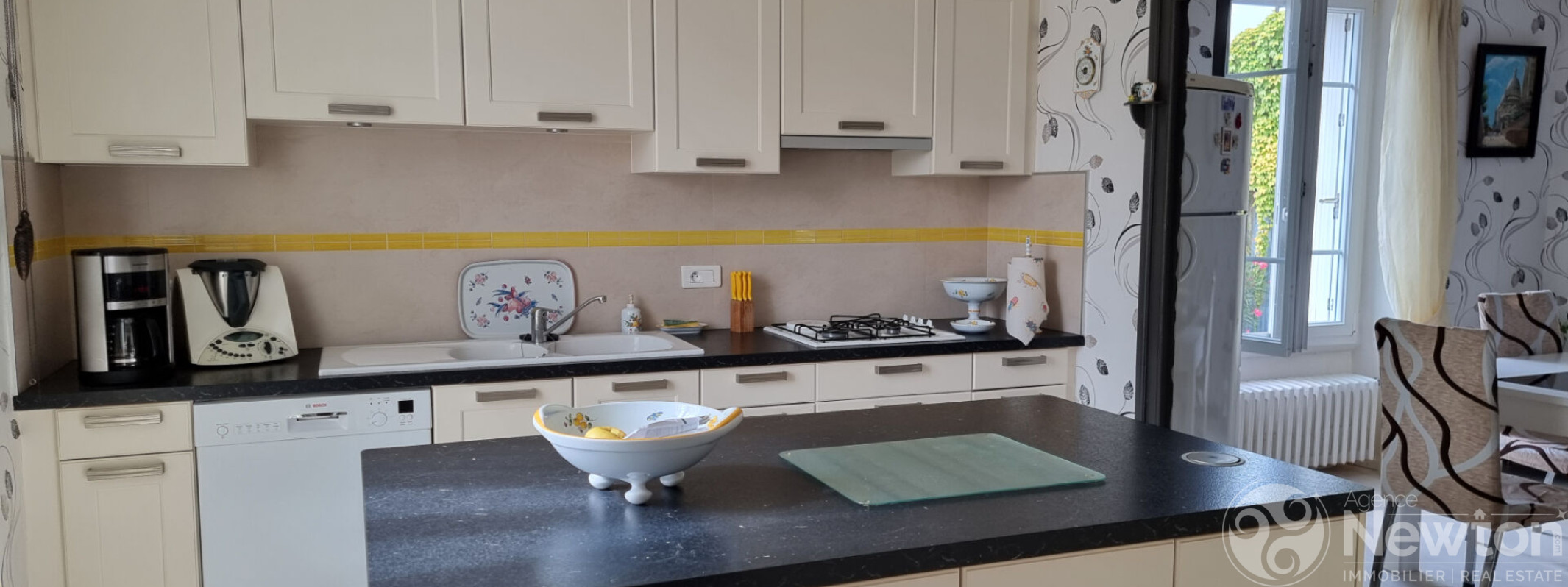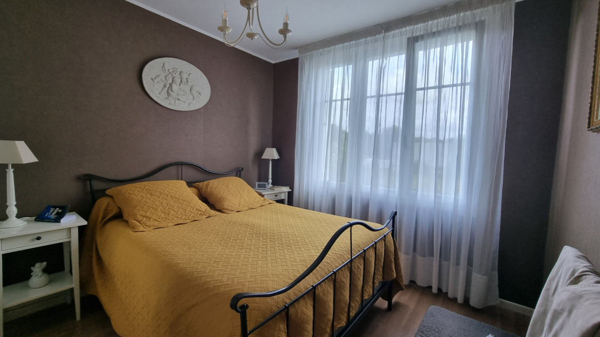 A l'étage, un vaste palier dessert trois autres chambres ainsi qu'une pièce avec lavabo. Le sous-sol de la maison offre encore davantage de possibilités, avec, d'un côté, un garage abritant la chaudière du chauffage central au fioul, et de l'autre, un bureau/cuisine d'été pratique avec espace buanderie donnant directement accès au jardin arrière entièrement clos, idéal pour les enfants et les animaux.