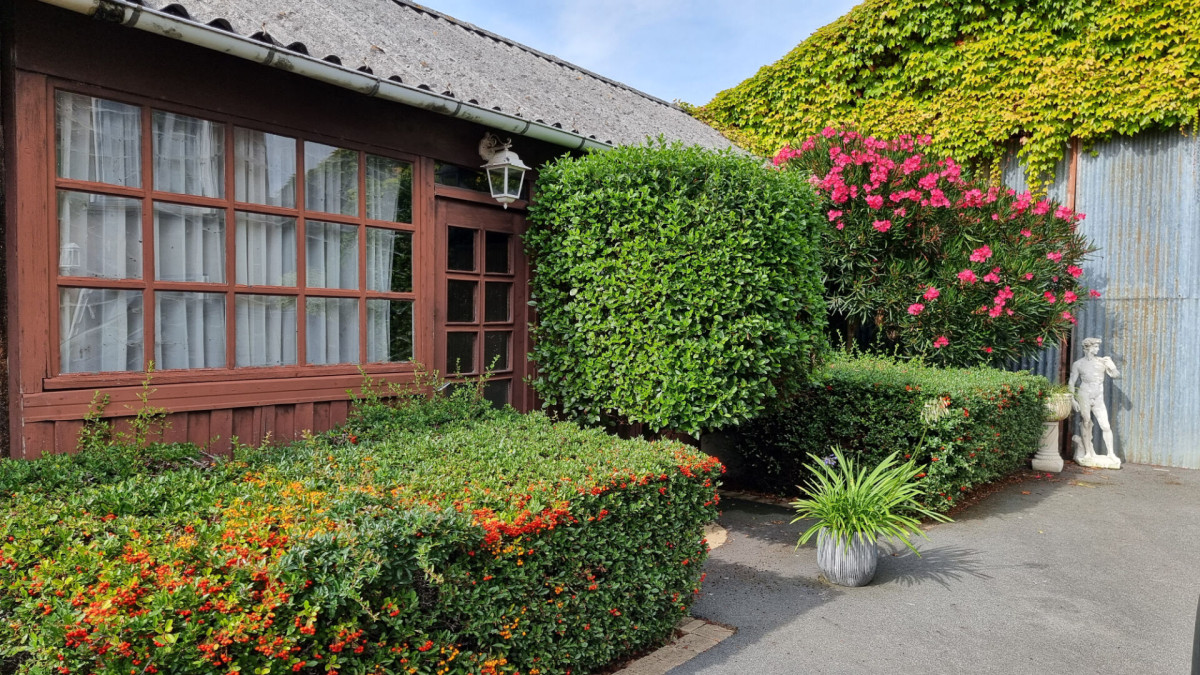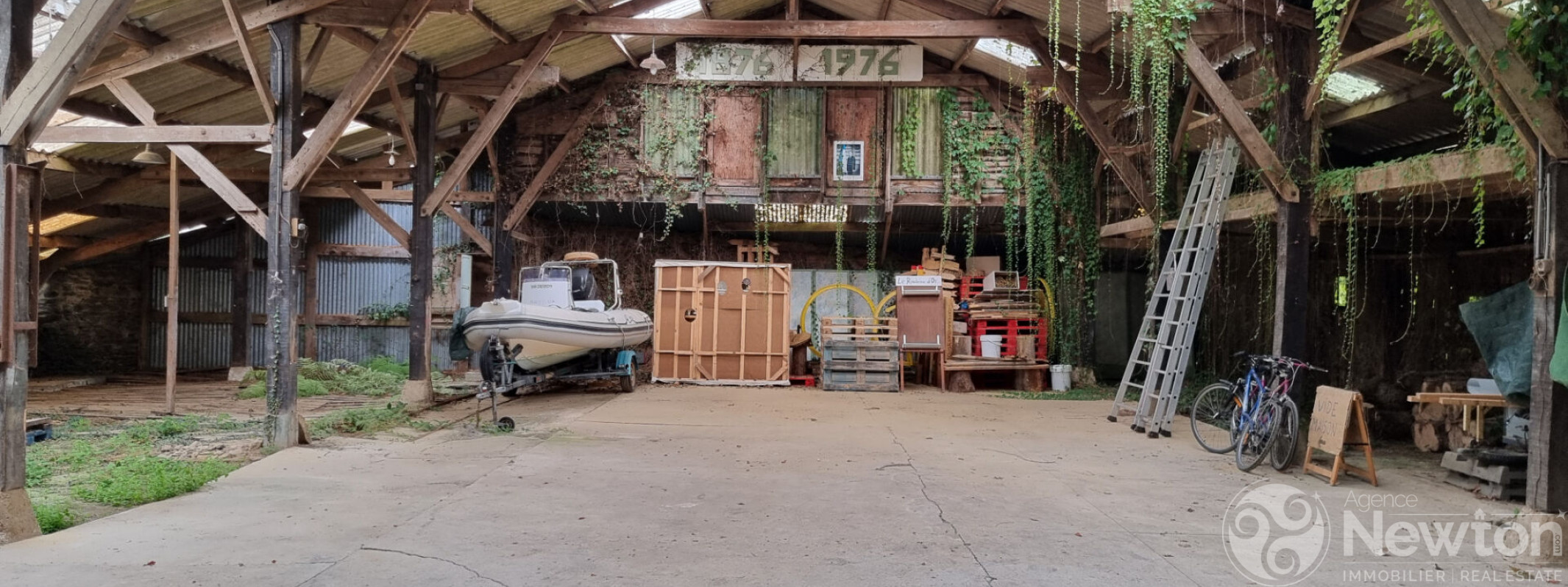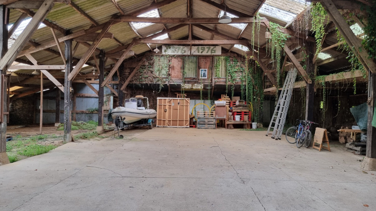 L'un des atouts majeurs de cette propriété est le vaste hangar situé sur le côté, autrefois atelier, qui constitue aujourd'hui un espace exceptionnel, parfait pour du stockage à l'abri, une collection de voitures anciennes ou même une brocante. A proximité se trouvent également une grange de rangement et un abri couvert pour stationner un véhicule, tandis que la grande cour goudronnée entre la maison et la grange offre de nombreuses places de parking.