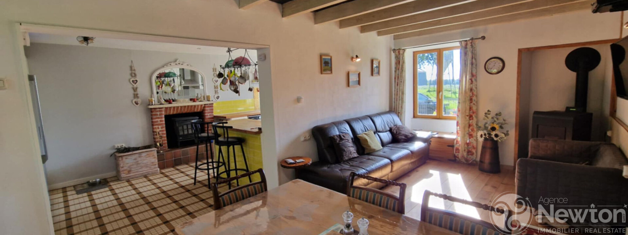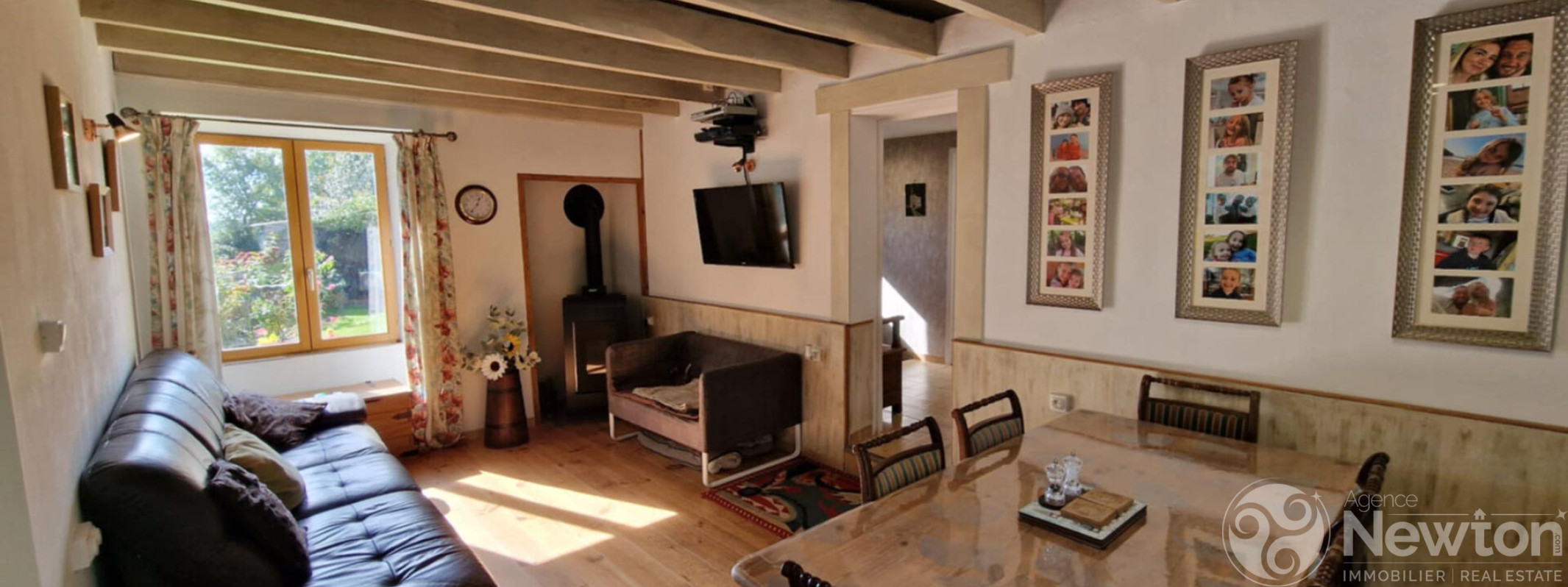 Cette maison atypique, située en campagne, dans un petit hameau, offre un cadre de vie paisible et sans travaux urgents.