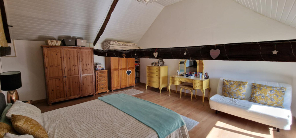 L'espace attenant est accessible depuis les deux étages, ce qui permet d'aménager une ou trois chambres supplémentaires si nécessaire. Il pourrait également être aménagé en un petit gîte indépendant pour accueillir des amis et la famille, ou être loué, ou encore servir de bureau indépendant ou d'espace de travail créatif.