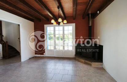 La maison est chauffée par une pompe à chaleur et un poêle à bois dans le salon.