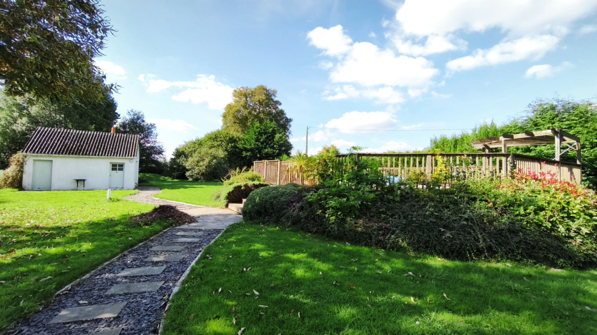 Une petite dépendance avec cheminée se trouve également dans le jardin arrière. Elle serait idéale pour accueillir une salle de loisirs, un atelier ou un coin douillet où s'évader.
