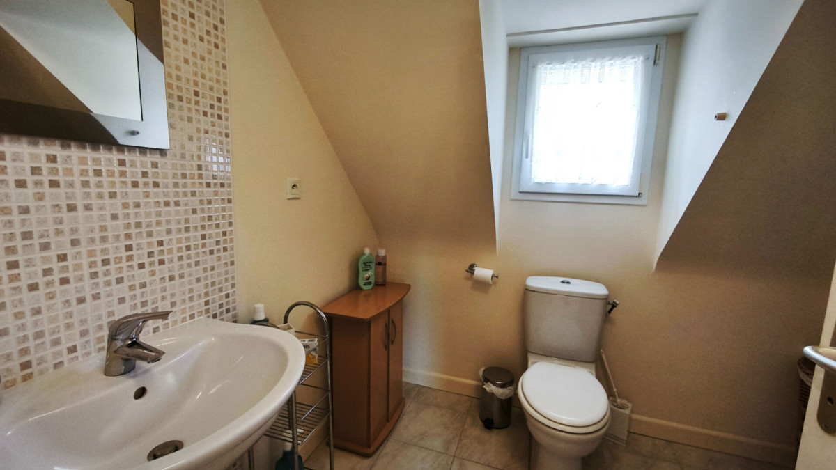 A l'étage, vous trouverez trois chambres, une salle d'eau avec WC, et un espace bureau ou coin lecture sur le palier.