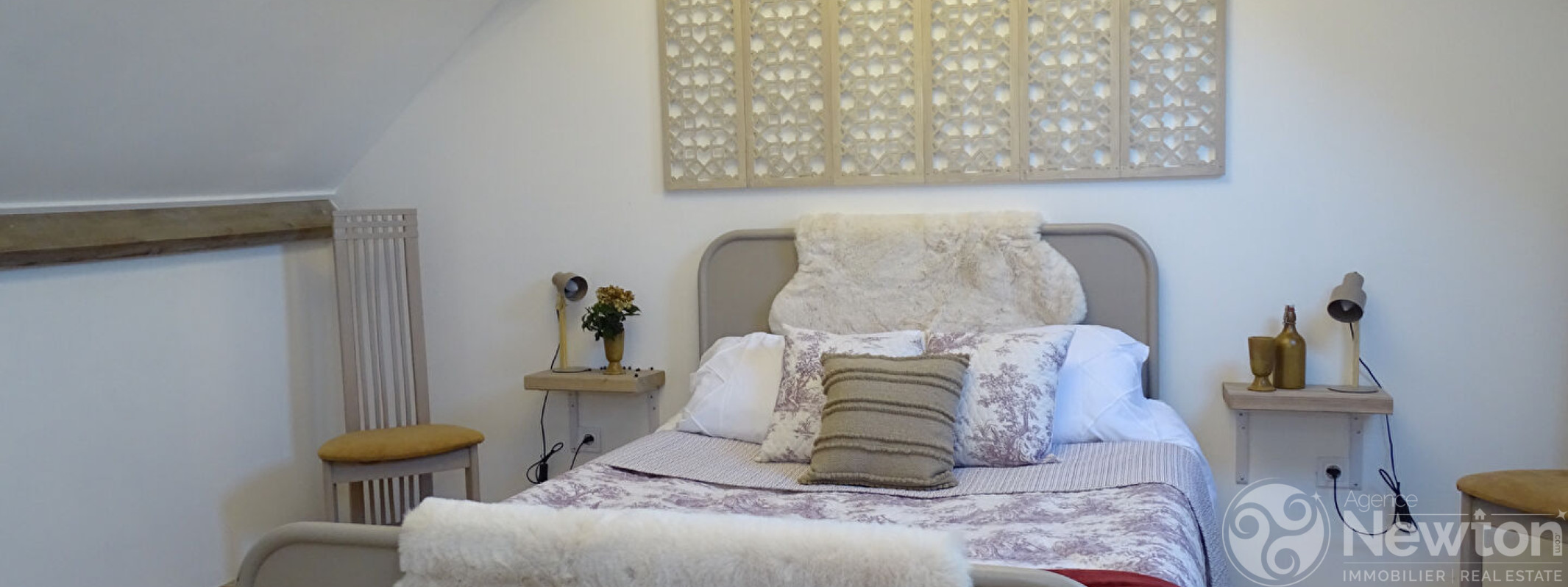 A l'étage, deux autres chambres et une salle d'eau privative avec WC complètent l'ensemble.