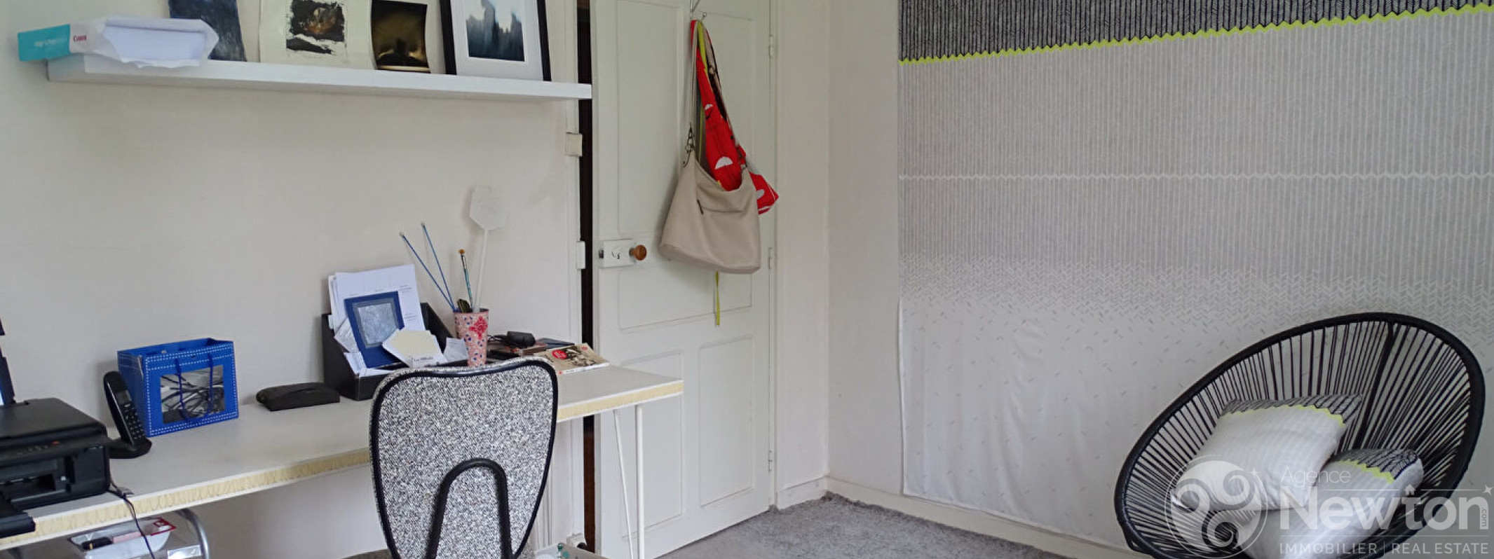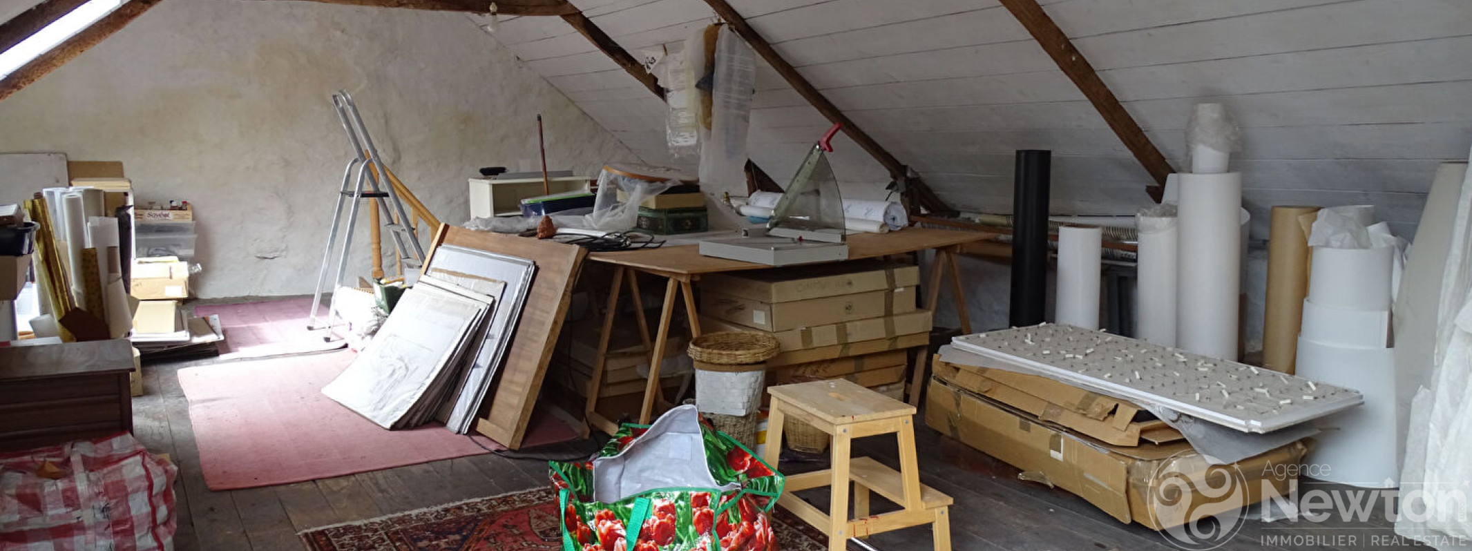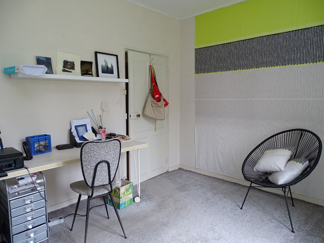 A l'étage, un autre grand couloir mène à un grand palier où se trouvent 3 chambres doubles, dont l'une est actuellement utilisée comme bureau. Il y a une salle de bain et un WC séparé.