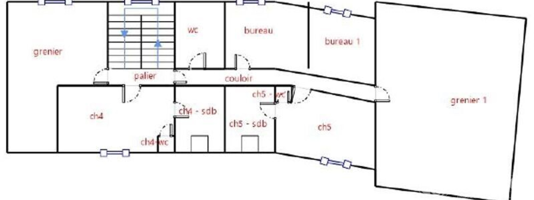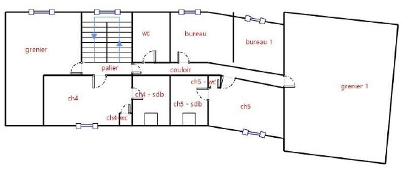 - 5 chambres avec salle de bain attenante et possibilité d'aménager d'autres chambres dans l'espace inutilisé