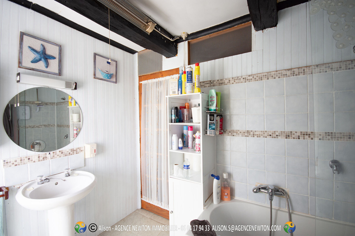 L'escalier d'origine mène au premier étage où se trouvent 2 chambres et une salle de bain carrelée avec baignoire-douche et WC.