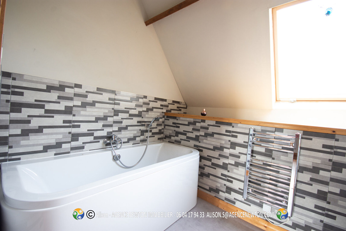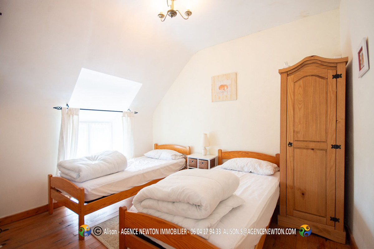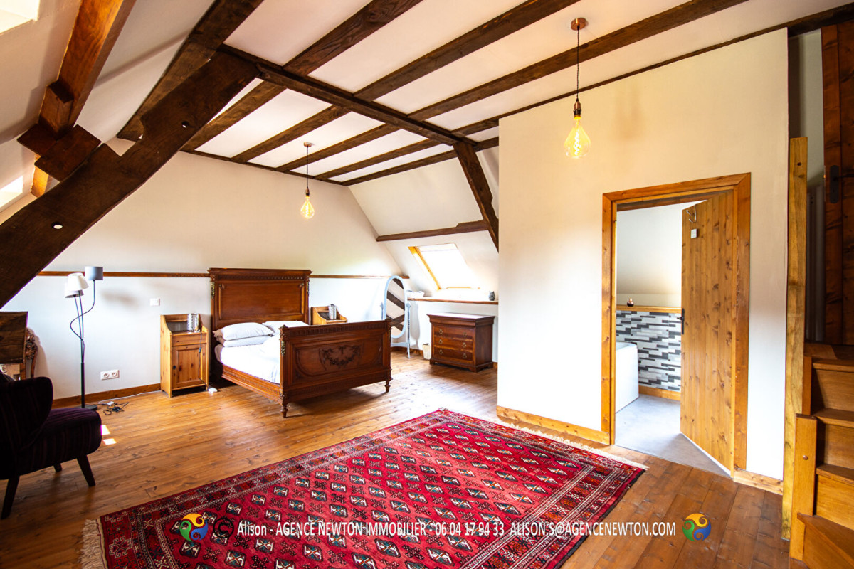 A l'étage, une vaste chambre principale offre un refuge intime avec sa salle de bain privative, tandis qu'une seconde chambre, délicatement aménagée, accueille familles ou amis. Une salle d'eau supplémentaire complète cet espace pensé pour le bien-être.